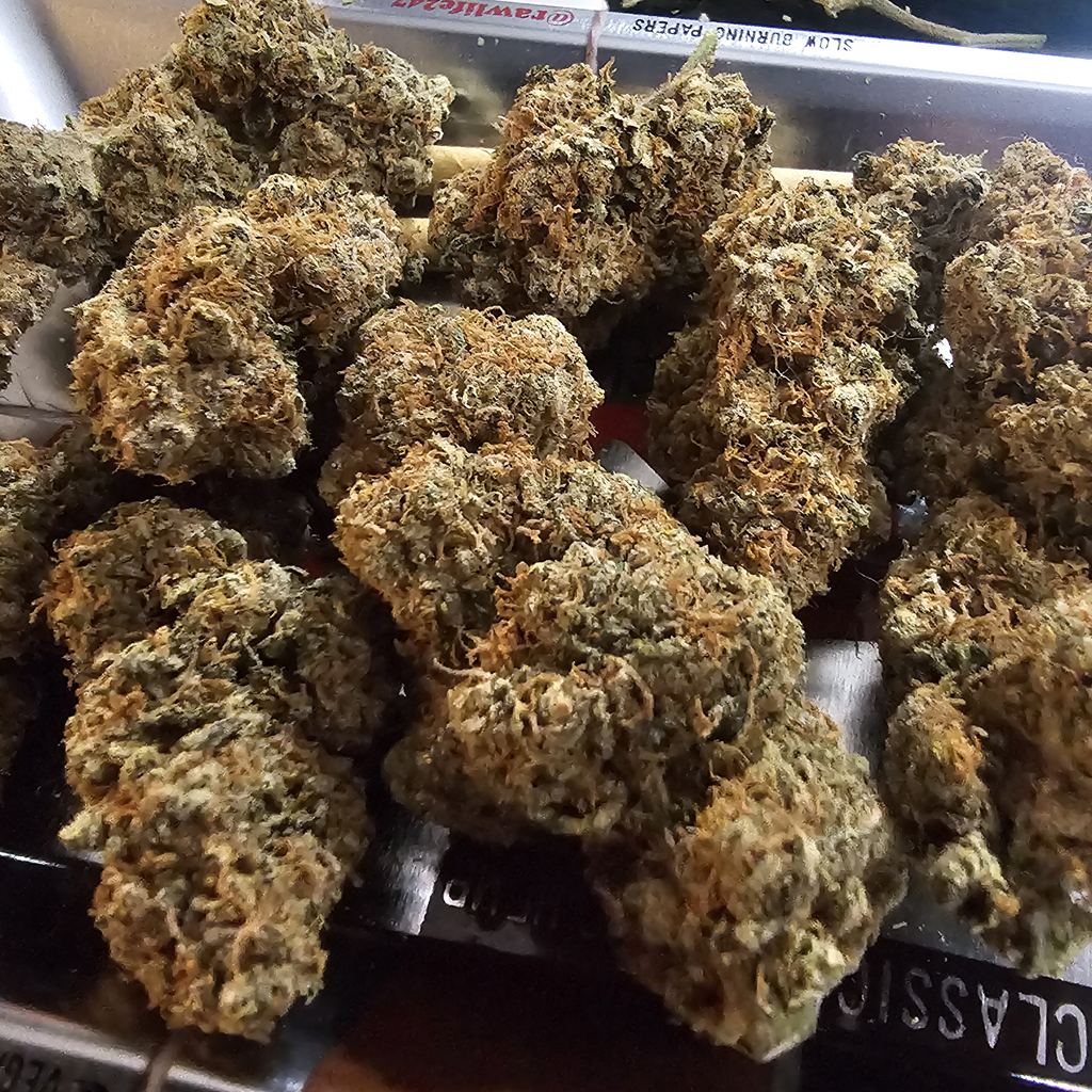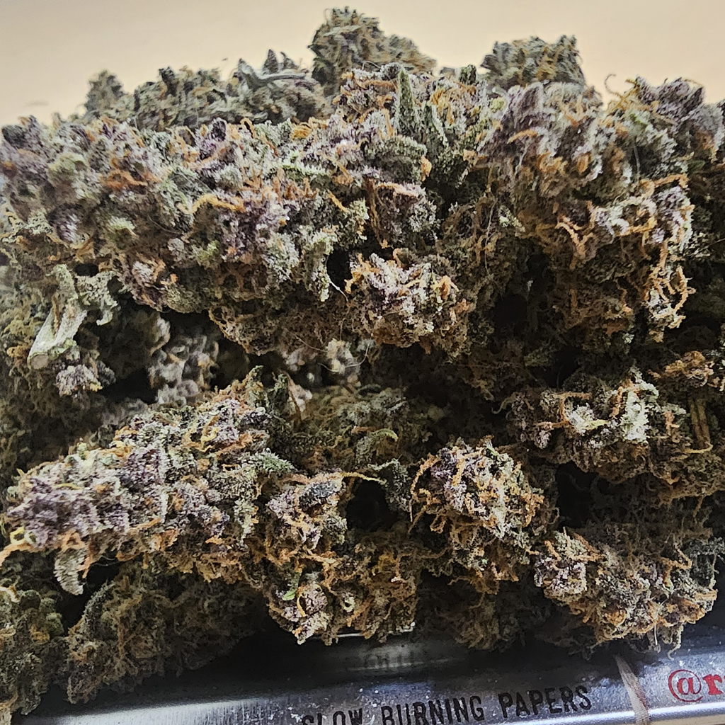 Alaskan Purple is an indica-dominant strain known for its calming and relaxing effects. Its flavor profile combines sweet, fruity notes with hints of earthy undertones, offering a smooth and enjoyable smoking experience. The high is soothing, making it perfect for evening or nighttime use when you want to unwind and relieve stress. Its deep purple buds are dense and covered in frosty trichomes, giving it a visually stunning appearance. Alaskan Purple is ideal for those seeking relief from pain, insomnia, or anxiety, providing a relaxing body high while still keeping your mind clear and focused.